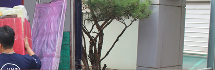 사전에 건물관리 책임자와 합의 하에 건물바닥, 엘리베이터 흠집, 파손 예방을 위한 보강작업을 합니다.