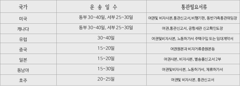 해외이사 관련 안내